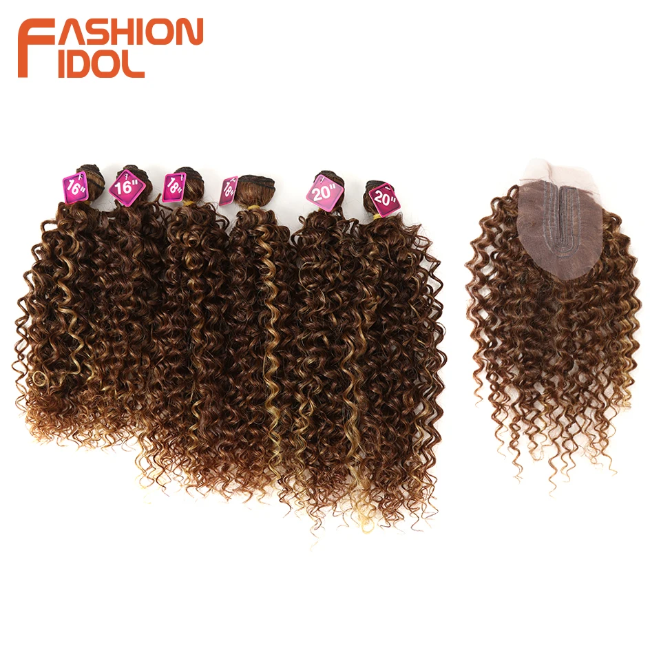 Name: FASHION IDOL-mechones de pelo sintético rizado Afro, malla con división frontal con cierre, extensiones de cabello falso tejido de 16-20 pulgadas