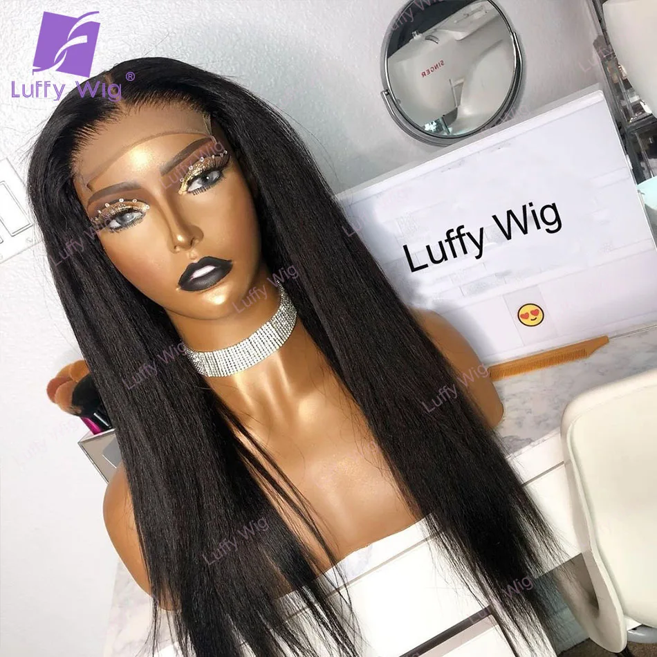 Name: Yaki-Peluca de encaje liso con Base de seda sintética, pelucas de cabello humano brasileño Remy, emulación, Top de cuero cabelludo, prearrancado, Luffy, 5x5