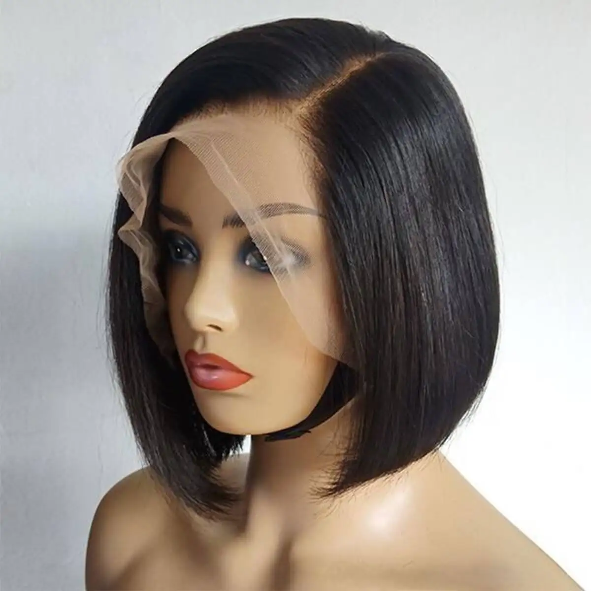 Name: Angelbella-Peluca de cabello humano brasileño liso con división para mujeres negras, malla con división, parte lateral Bob, 150 de densidad, Bob corto en T