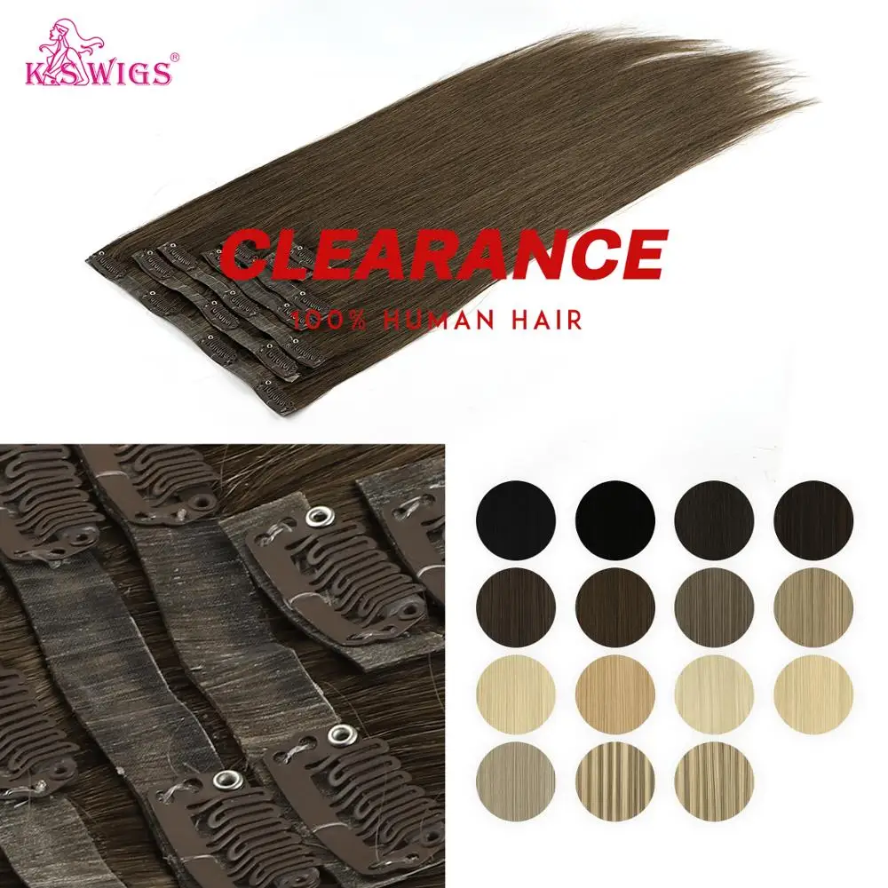 Name: K.S WIGS-extensiones de cabello humano con Clip de PU, 20 pulgadas, sin costuras, liso, 100%, Remy, brasileño, 7 Uds., 100g de cabello Natural
