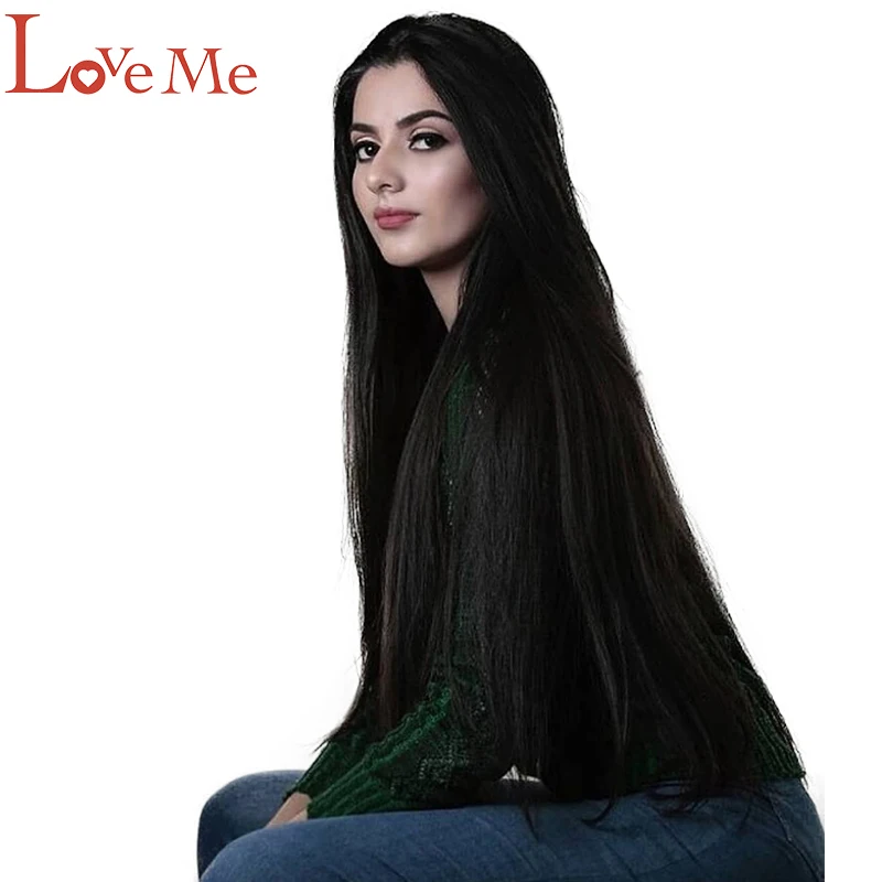 Name: LOVE ME-peluca sintética de fibra de alta resistencia, 38 pulgadas, pelo falso superlargo, liso, Color negro, Cosplay, sintético