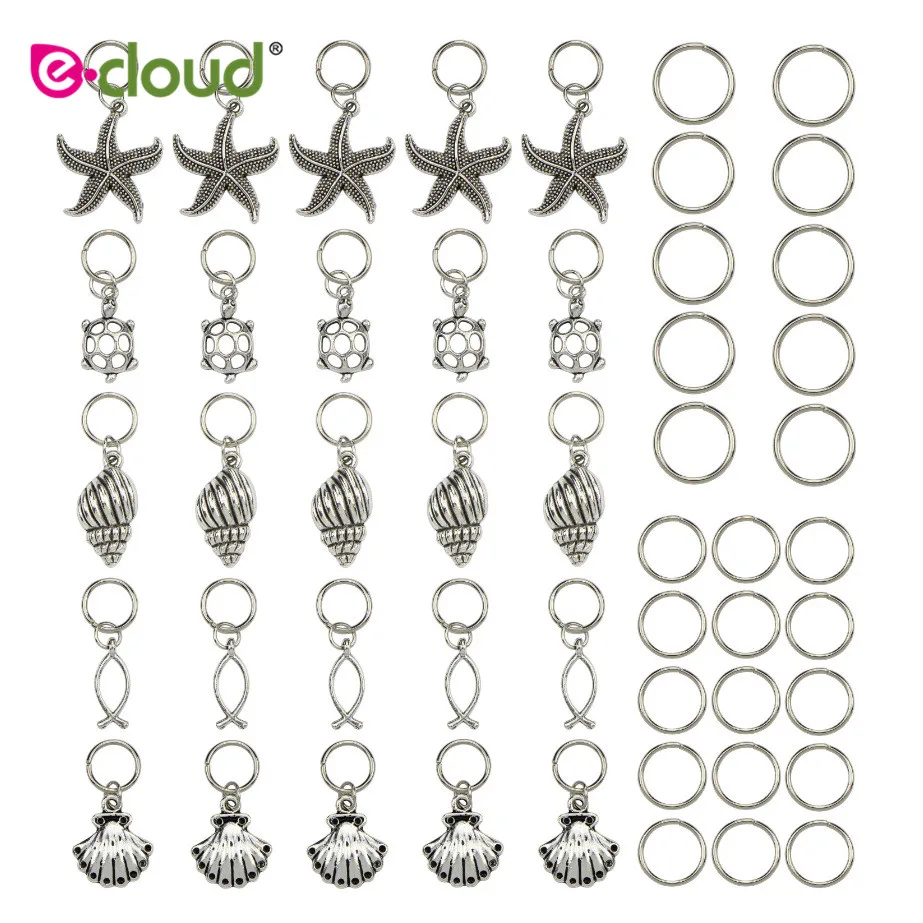 Name: 50 Uds. Trenzadas de cuentas para el cabello de Color plata, Clips para el pelo, brazaletes de Metal trenzados, joyería, colgantes, accesorios para la decoración del cabello