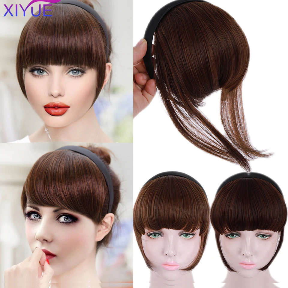 Mejor Extensiones sintéticas de XIYUE Hair Store por Flequillo con flequillo de fibra de alta temperatura para niña, extensiones de cabello sintético liso con Clip en flecos