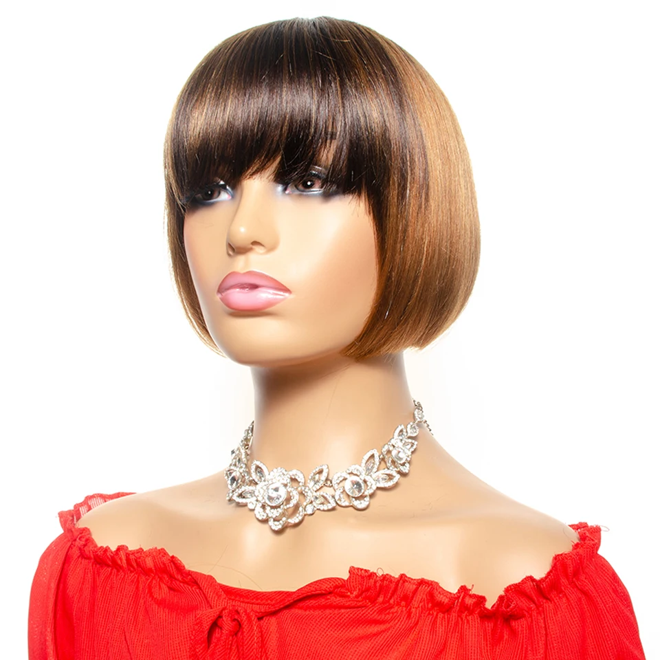 Name: Ombre Bob corto peluca con flequillo recto brasileño pelucas de cabello humano rubio miel cabello humano pelucas completas con Bang cabello Remy