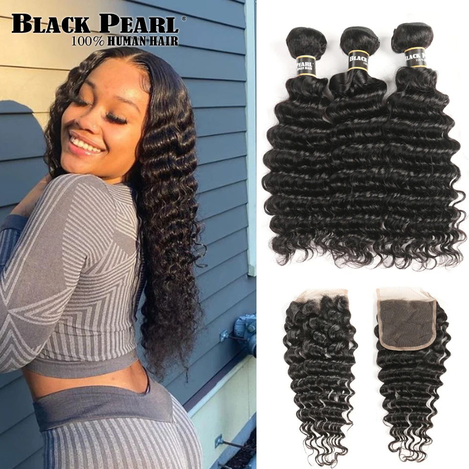 Name: Mechones de onda profunda con Perla Negra, cabello de Malasia Remy, mechones de 30 pulgadas con cierre, 3 mechones