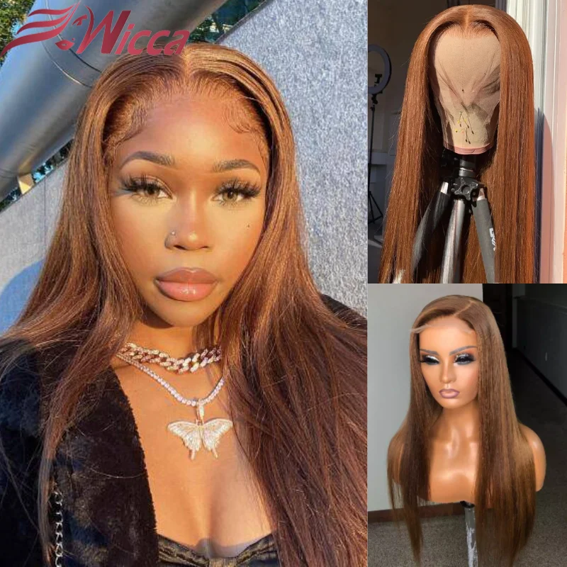 Mejor Pelucas de encaje de Wicca Hair Store por Peluca de cabello humano con encaje Frontal 13x6 para mujer, pelucas de cabello humano de color marrón prearrancado, brasileño, Remy, liso